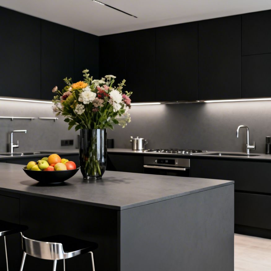 Incorporate natural materials such as timber benchtops or warm-toned lighting. Adding greenery or copper accents can also soften the look.